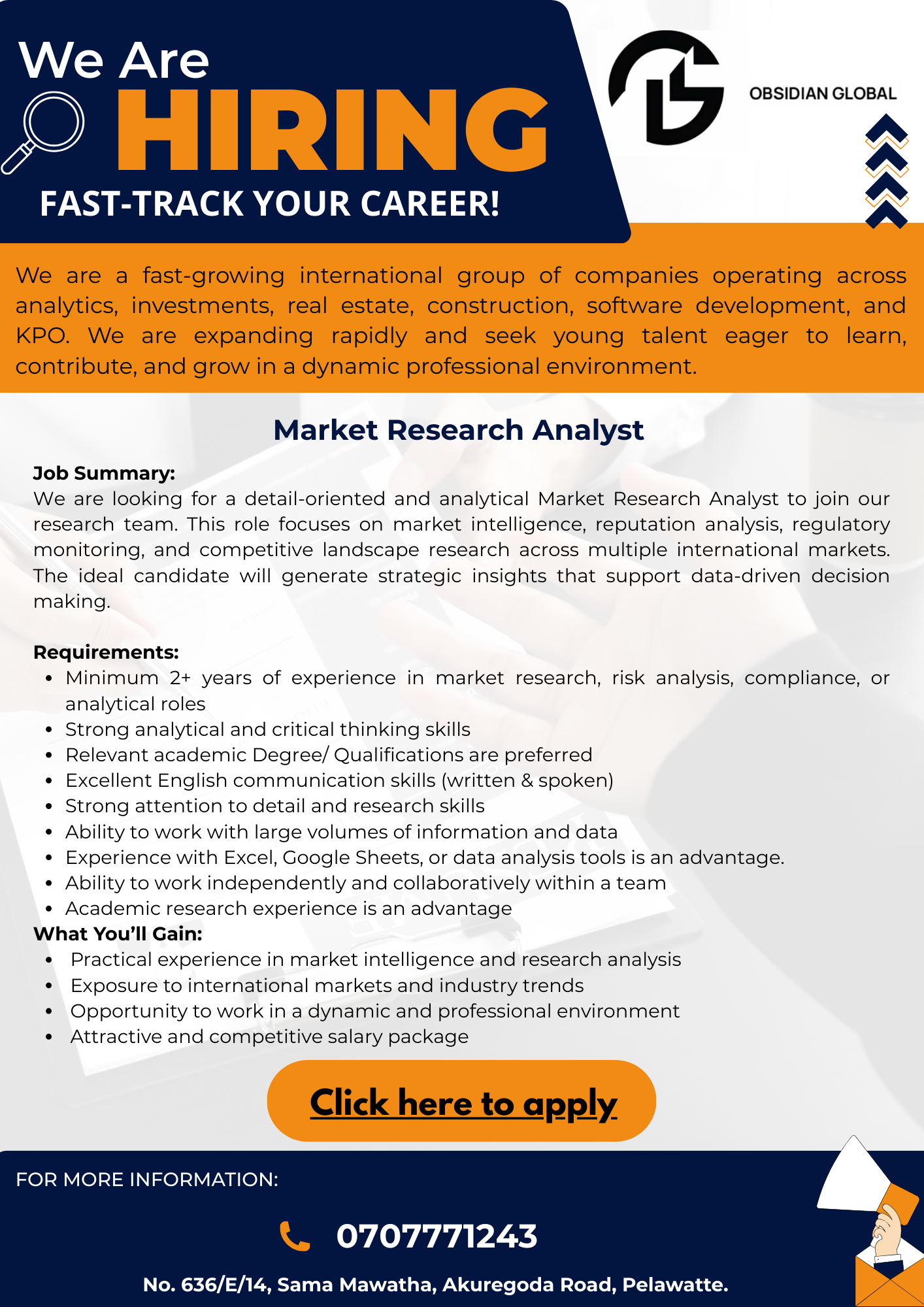 - Minimum 2+ years of experience in market research, risk analysis, compliance, or analytical roles